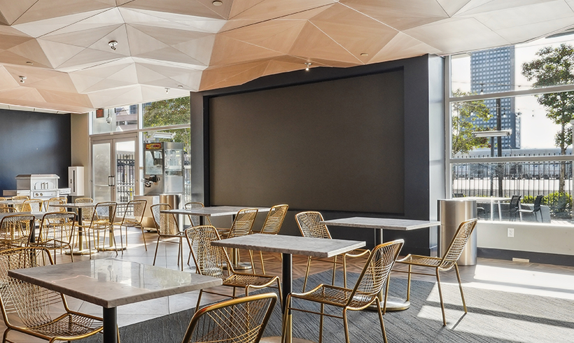 Located on the ground level, Courtside Club offers an easy in-and-out flow with access from the nearby East Ground doors. With LED screens and an outdoor patio, it works well for receptions, pre-event meetups, private functions, and press events.